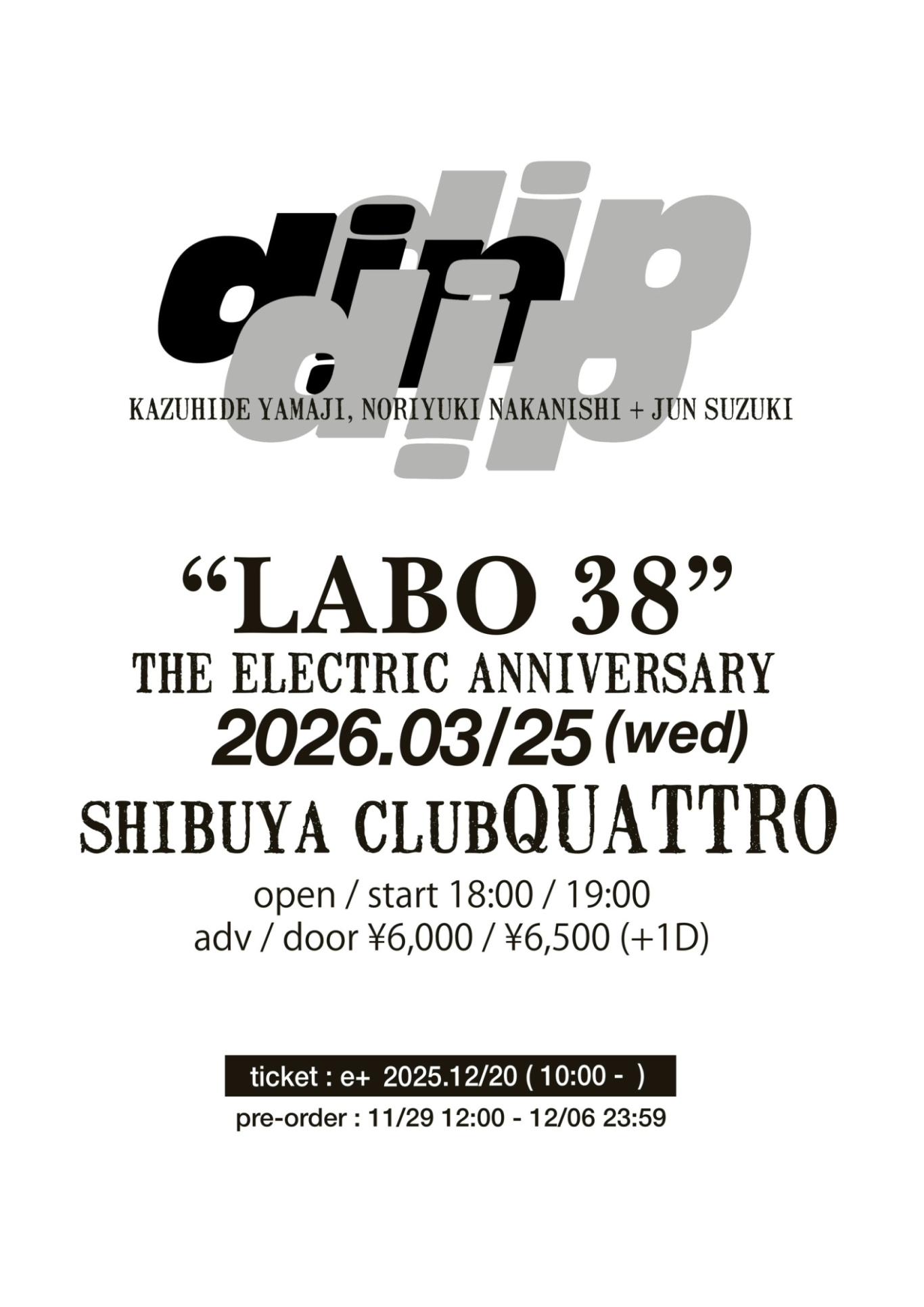 dip (ヤマジカズヒデ+ナカニシノリユキ) Guest:細海魚 (Key)/田渕ひさ子 (Gt)/鈴木淳 (Ba)/イズミコウジロウ (Ba)/ヨシノトランス (Ba)
