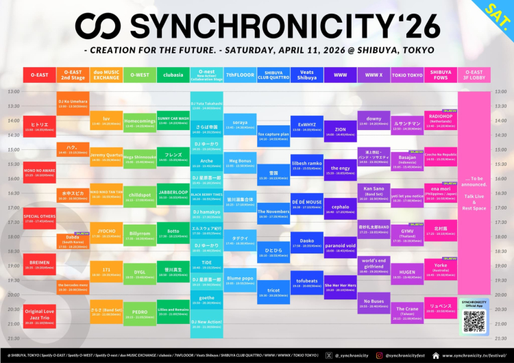 Spotify O-EAST / Spotify O-WEST / Spotify O-nest / duo MUSIC EXCHANGE / clubasia / 7thFLOOR / SHIBUYA CLUB QUATTRO / Veats Shibuya / WWW / WWWX / TOKIO TOKYO / SHIBUYA FOWS
